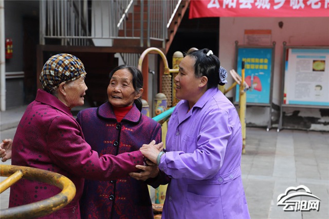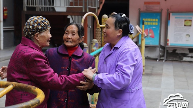 院內(nèi)干凈整潔,環(huán)境幽雅,暖陽(yáng)高照,護(hù)理員傅冠蘭陪著老人們圍坐著閑聊,時(shí)而歡聲笑語(yǔ),敬老院十分熱鬧。