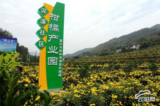 10月27日,在泥溪鎮(zhèn)泥溪社區(qū)柑橘產(chǎn)業(yè)園,村民們正忙著采摘套種的金絲黃菊。