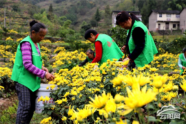 當(dāng)?shù)卮迕裨诟涕倭窒绿追N菊花,每畝收益約5000元,比傳統(tǒng)種植收入提高了1倍。近年來(lái),云陽(yáng)注重科學(xué)引領(lǐng),幫助農(nóng)民因地制宜間作套種中藥材、菊花、水果等,促進(jìn)農(nóng)作物增產(chǎn)、農(nóng)民增收。(鄧?yán)?王月園 攝)
