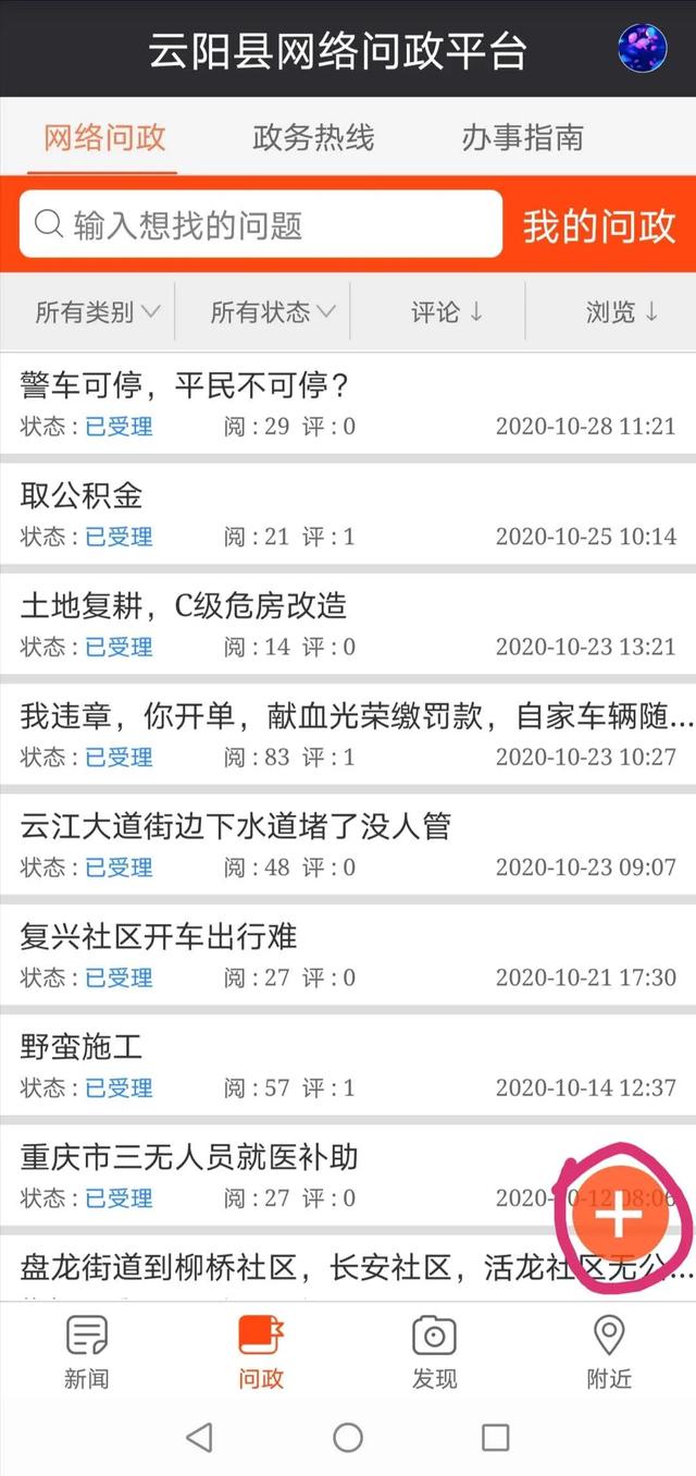 都可以通過(guò)《智慧云陽(yáng)》客戶端網(wǎng)絡(luò)問(wèn)政進(jìn)行