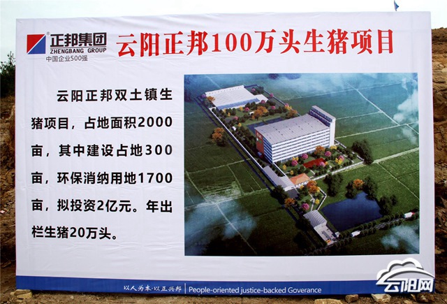正邦集團(tuán)是農(nóng)業(yè)產(chǎn)業(yè)化國(guó)家重點(diǎn)龍頭企業(yè)和國(guó)家高新技術(shù)企業(yè),在國(guó)內(nèi)享有盛譽(yù)。生豬繁育與養(yǎng)殖位居全國(guó)前10強(qiáng),是國(guó)家生豬核心育種場(chǎng)。本次正邦集團(tuán)與云陽(yáng)合作100萬(wàn)頭生豬全產(chǎn)業(yè)鏈項(xiàng)目,總投資達(dá)30億元,涵蓋生豬養(yǎng)殖、屠宰加工、特色種植、冷鏈物流、有機(jī)肥生產(chǎn)等多個(gè)版塊,分布在雙土、大陽(yáng)、高陽(yáng)、云安等十多個(gè)鄉(xiāng)鎮(zhèn),建設(shè)周期約3年。項(xiàng)目完全投產(chǎn)后,年存欄母豬可達(dá)5萬(wàn)頭、出欄生豬可達(dá)100萬(wàn)頭,全縣生豬出欄量將提升2倍以上,可創(chuàng)造年產(chǎn)值70億元以上,每年直接創(chuàng)稅超5000萬(wàn)元,帶動(dòng)就業(yè)4000余人。首期開工的雙土鎮(zhèn)土垣村項(xiàng)目點(diǎn)為育肥場(chǎng),占地2000畝,年出欄生豬20萬(wàn)頭。