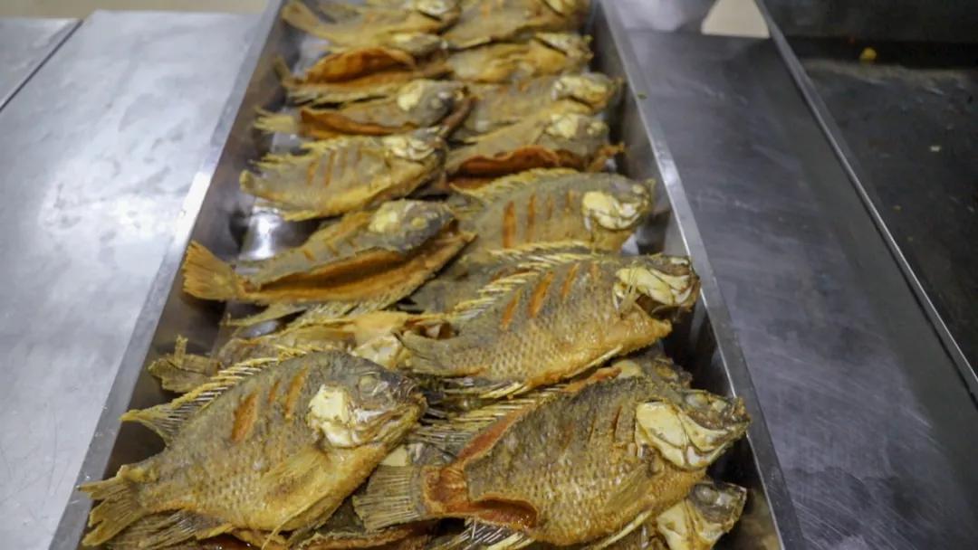 日前,在宏霖食品有限公司網(wǎng)貨加工區(qū),自熱系列烤魚生產(chǎn)線上,工人們有條不紊地忙碌著。他們將羅非魚灌料腌制,抺上淀粉后放進油鍋里炸至兩面金黃,再進行裝袋。這是公司電商平臺急需發(fā)貨的一批訂單,工人們正在加班加點地生產(chǎn)。