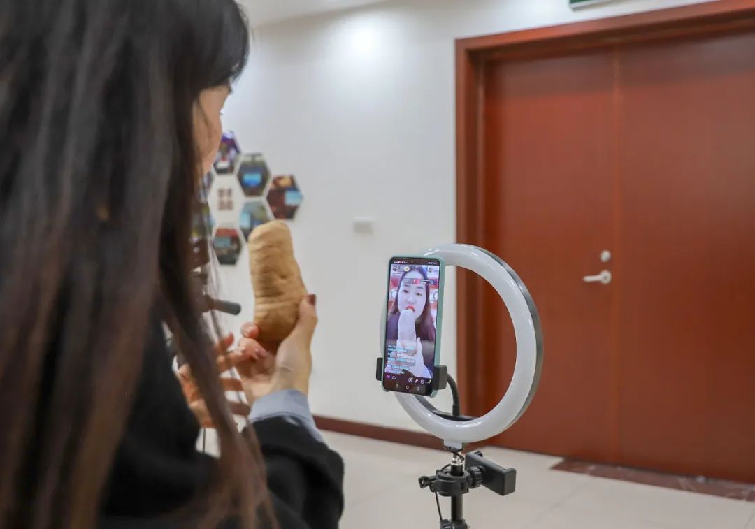 直播帶貨給譚曉紅帶來新啟發(fā)。在宏霖食品辦公區(qū),設(shè)有專門的直播間。今年5月,該公司參加了我縣組織的一次公益直播活動,當(dāng)天銷售1萬多單,讓譚曉紅嘗到了直播帶貨的甜頭,決定將營銷策略進一步向電商傾斜。