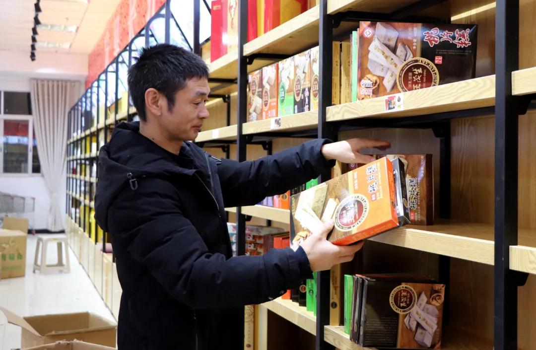 工作人員正忙著將云陽(yáng)的農(nóng)特產(chǎn)品擺放在貨架,為明天的正式開(kāi)館做最后準(zhǔn)備。