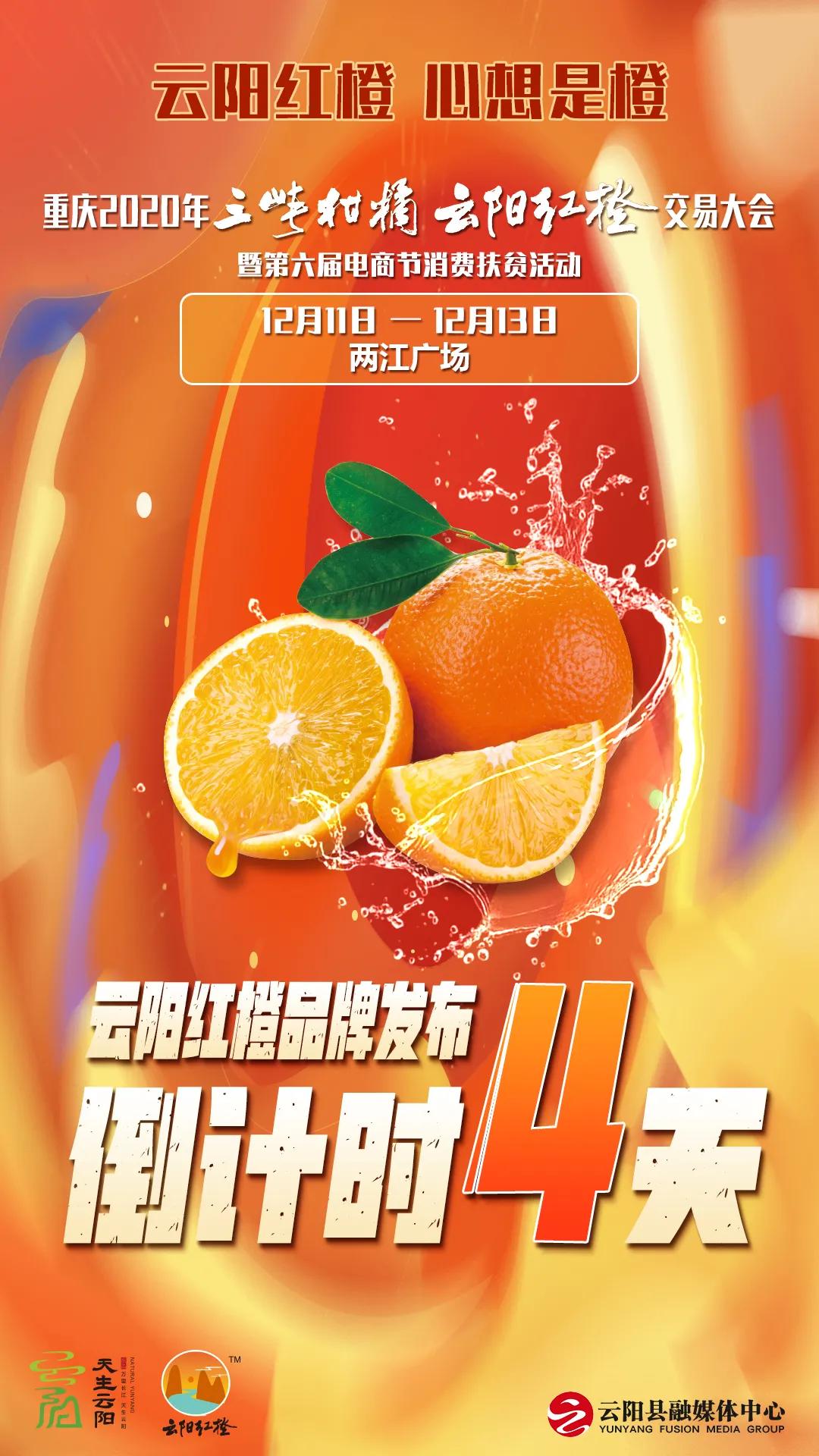 離12月11日即將舉辦的“重慶市2020年三峽柑橘·云陽(yáng)紅橙交易大會(huì)暨第六屆電商節(jié)消費(fèi)扶貧活動(dòng)”只有4天了,這個(gè)周末我們不僅僅可以吃柑橘,還有很多精彩活動(dòng)等著大家呢!