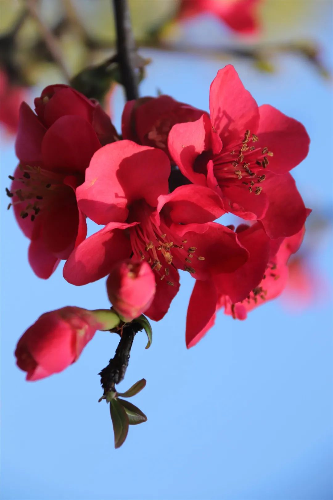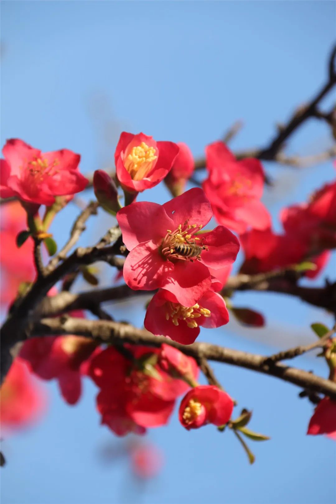 藍天為襯,花枝“作畫”