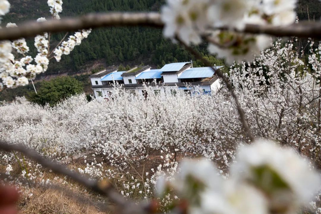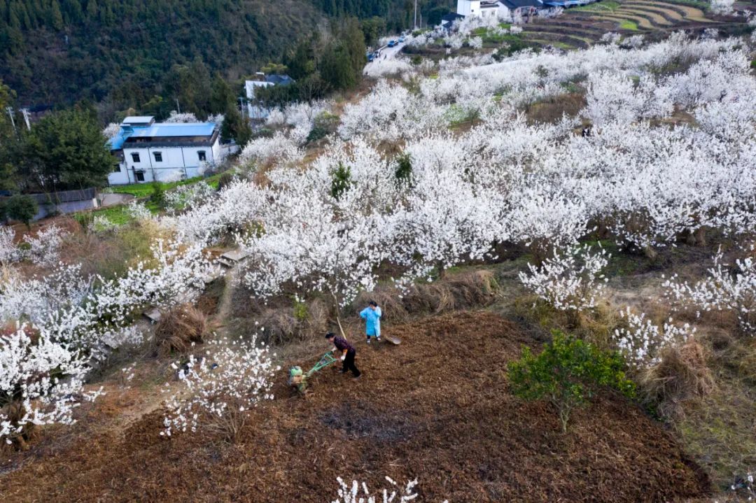 幾百畝櫻桃花綻放在田野村落間