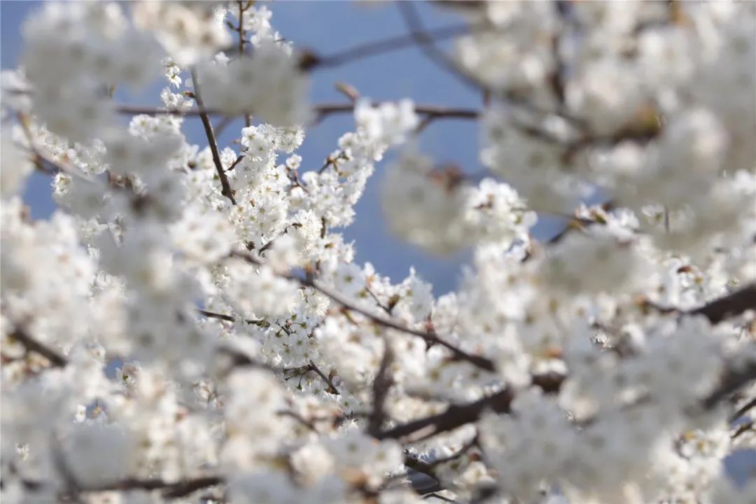滿眼的櫻桃花,蜜蜂穿梭在雪白的櫻桃花間