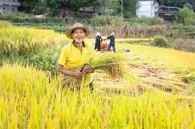 雙土鎮(zhèn)村民稻谷豐收笑顏開 攝/凌育清 |
