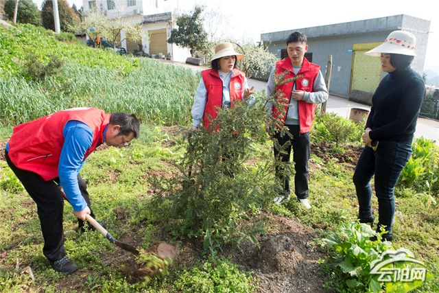 “先挖1米見方的坑,將所挖的土分三部分堆放,在底部施底肥0.5至1公斤,與第一層表土攪拌均勻,再填埋第二層土,然后將土弄細(xì),最后將帶有營(yíng)養(yǎng)土的苗子放在正中,累上泥土固定后,再將苗子向上提一提,把周圍夯實(shí),最后澆上定根水?!被乩?,陳文銀、劉亞敏一邊示范,一邊詳細(xì)講解香榧果樹的種植要領(lǐng),并對(duì)果樹生長(zhǎng)過程中存在的問題進(jìn)行指導(dǎo)。