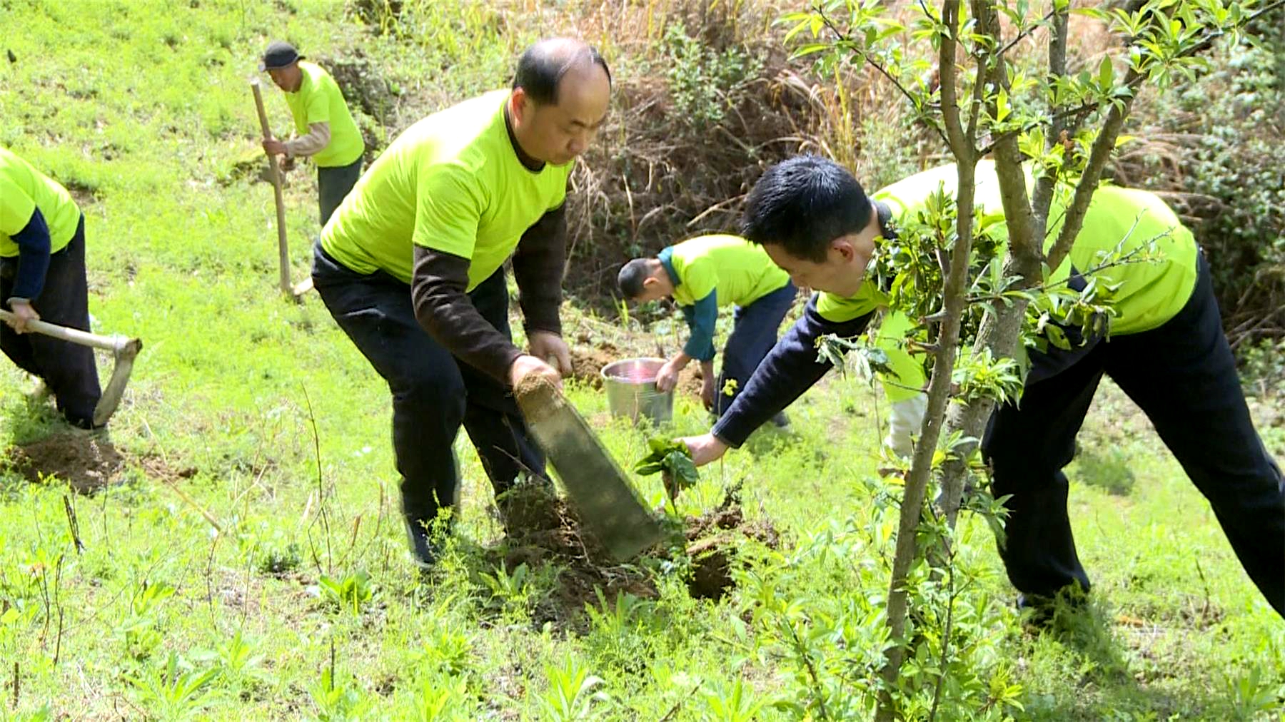 活動現(xiàn)場,大家分工合作,熱情高漲。搬運樹苗、挖坑、扶苗、填土、澆水,各個環(huán)節(jié)有條不紊,處處都是忙碌的身影。經(jīng)過一番辛勤勞作,800株山胡椒苗木挺立在山坡上。