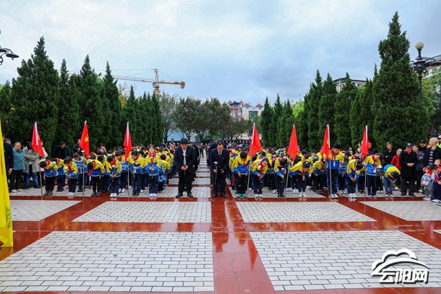 4月2日上午,學校全體黨員同志、300名少先隊員,在民德廣場進行掃墓活動,緬懷革命先烈。