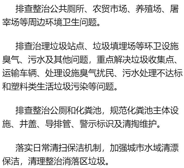 重點開展加強背街小巷、老舊小區(qū)、城中村、城鄉(xiāng)結(jié)合部等區(qū)域環(huán)境治理,解決垃圾亂扔、污水亂倒等問題。