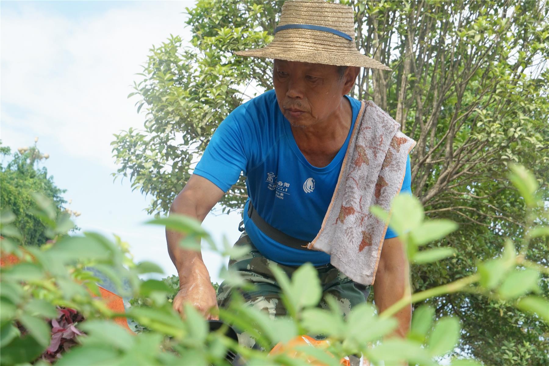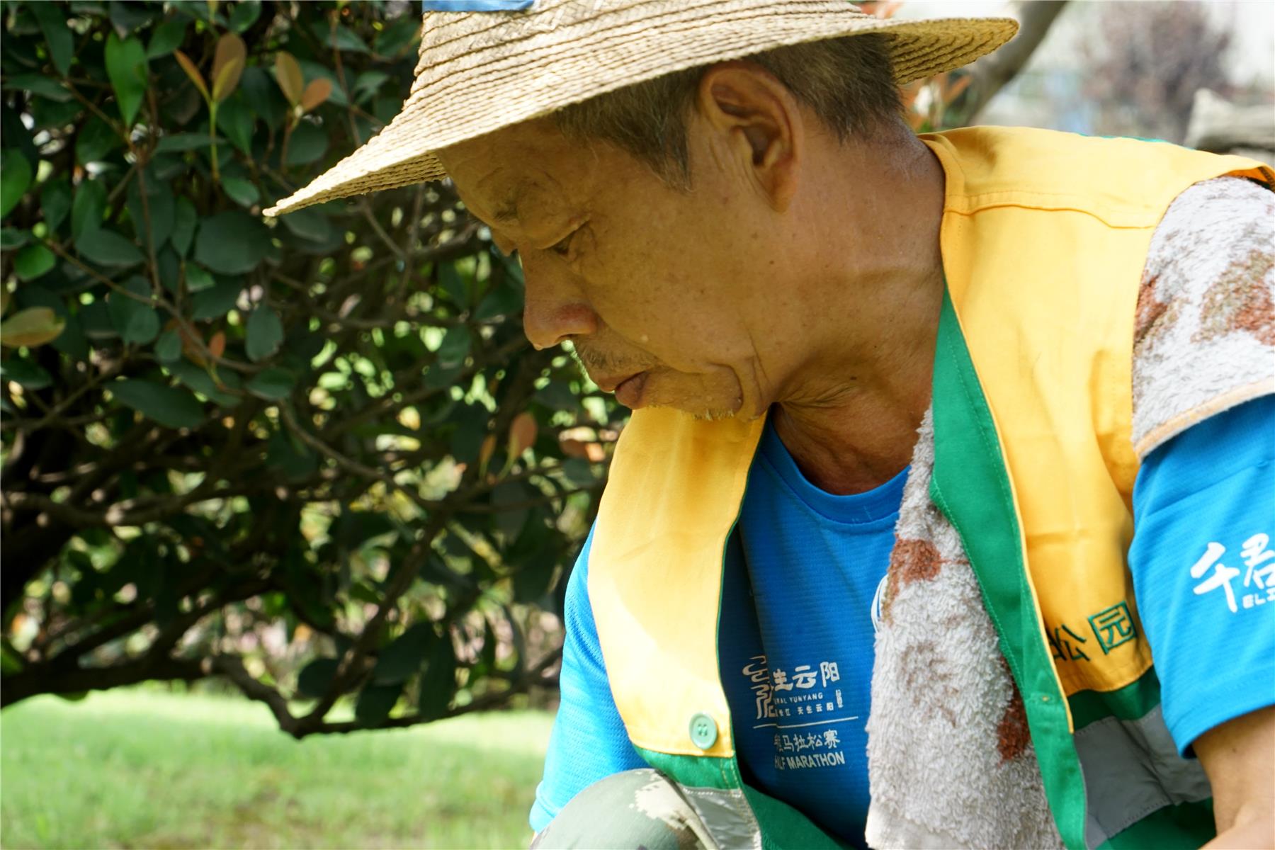 當(dāng)記者問起這么熱的天不怕熱嗎,王成剛不經(jīng)意地擦擦汗說道:“夏天來了,熱肯定是熱的,再熱我們都要盡量穿長衣長褲戴手套,雖然這樣會讓我汗流浹背,但是既能防曬又能防蚊蟲叮咬?!逼綍r在高溫下的工作,常常會讓他汗流浹背、口干舌燥,累了的時候,坐到旁邊的凳子上,用草帽扇扇風(fēng),給他自己一點緩沖時間,調(diào)整好再投入工作。王成剛的皮膚已經(jīng)被太陽曬得黝黑,但他一點也不在意,他說:“只要能做好綠化工作,苦點累點都值得?!?/p>
