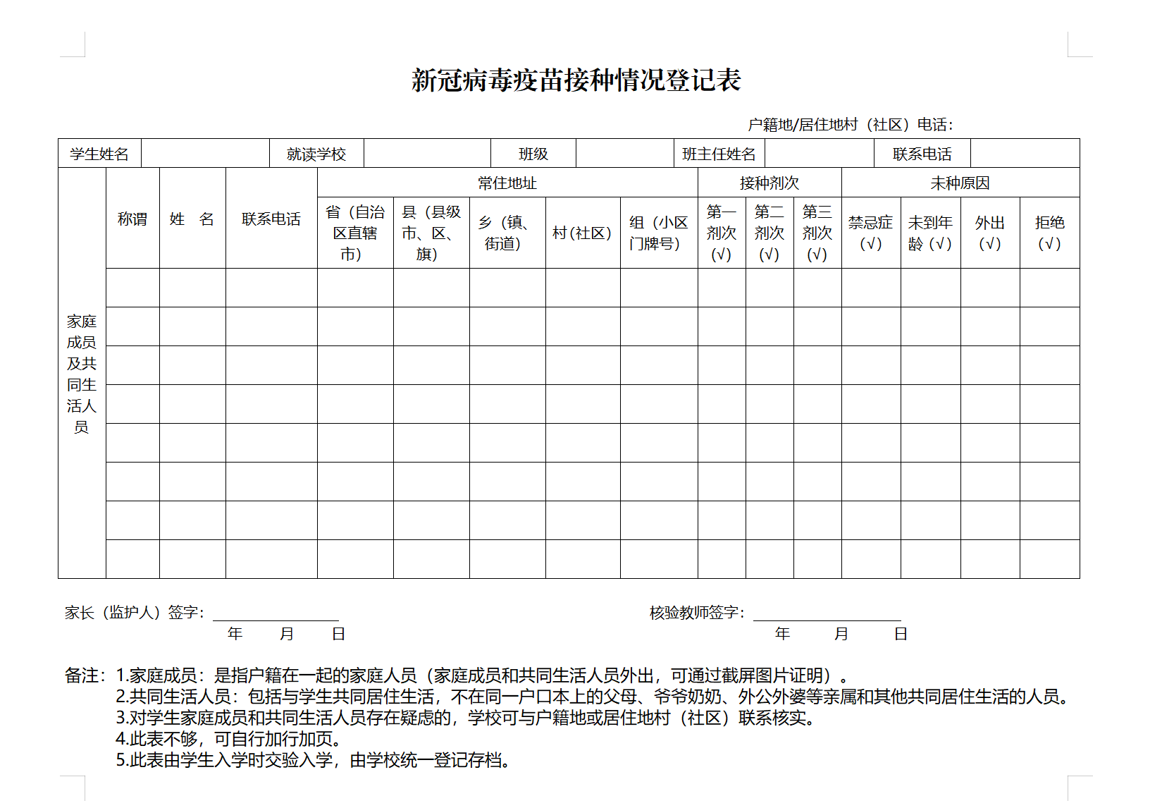 2.如實(shí)填寫《新冠病毒疫苗接種情況登記表》,并附有效證明(如健康碼、育苗通等及其截屏圖片,或醫(yī)院接種、禁忌接種證明等),今年學(xué)生秋季入學(xué)時(shí)交驗(yàn)入學(xué)。