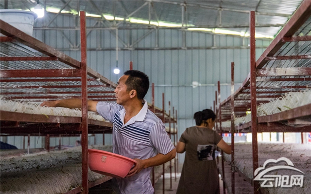 云陽網(wǎng)訊(記者 譚啟云)近日,鳳鳴鎮(zhèn)平頂村黃泥塝家庭農(nóng)場一派繁忙,整齊劃一的養(yǎng)蠶大棚里,蠶農(nóng)們正在給蠶寶寶添加桑葉。