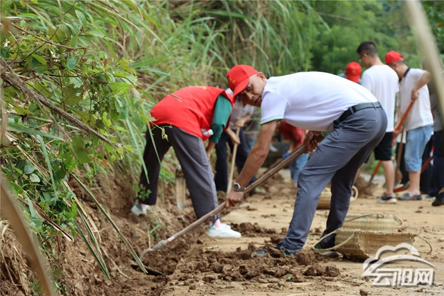 7月28日一大早,該鎮(zhèn)再次召集機關(guān)干部職工40余人,來到雙蘭路旁斜體滑塌處,對4處堵塞路段及沿線3公里路邊溝進行集中清掏??逅耐炼阎谢旌现蟠笮⌒〉氖瘔K和折斷的樹木,幾乎占據(jù)了道路的一半。炎炎烈日下,干部職工們躬下身,賣力地?fù)]舞著手中的鋤頭和鐵鍬,一旁的則負(fù)責(zé)將裝好的泥土傾倒到對面的荒地里,片刻時間,大家都汗流浹背,身上的短袖幾近全濕。