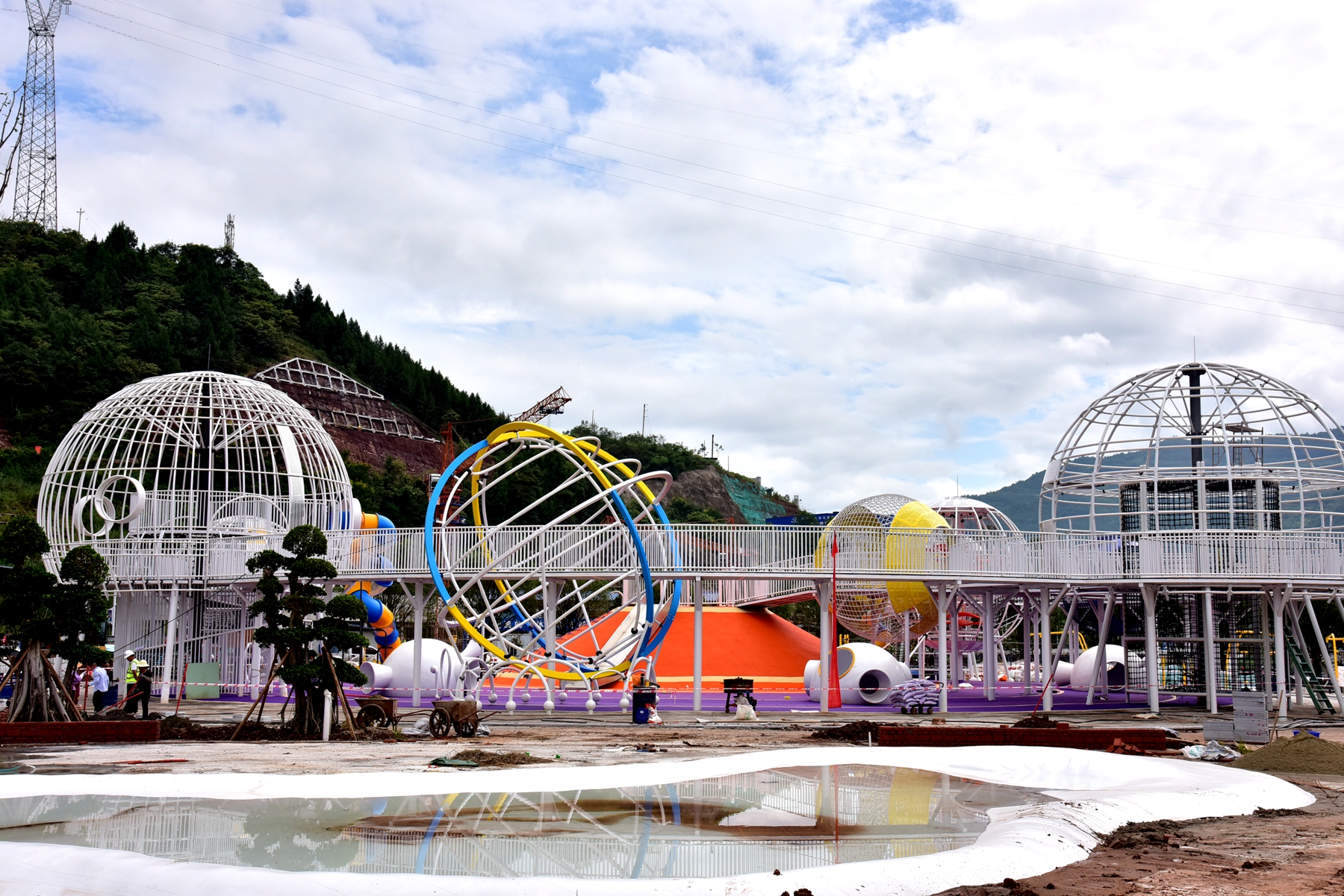 自今年1月份開工建設(shè)以來,彩云陽光兒童游樂園項目嚴(yán)格按照工期表,高質(zhì)高效推進(jìn)建設(shè)進(jìn)度。目前該游樂園土建主體已經(jīng)完工,正在進(jìn)行路面鋪裝和綠化,以及建筑物的外裝飾;各項游樂設(shè)備的主骨架即將安裝完畢,下一步將進(jìn)行設(shè)備投入使用前的安全檢查和調(diào)試工作,9月28日將建成開放。
