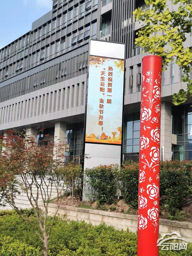在迎賓大道“水韻”燈柱,也制作了金秋節(jié)的宣傳標(biāo)語,燈光秀絢爛多姿、流光溢彩。