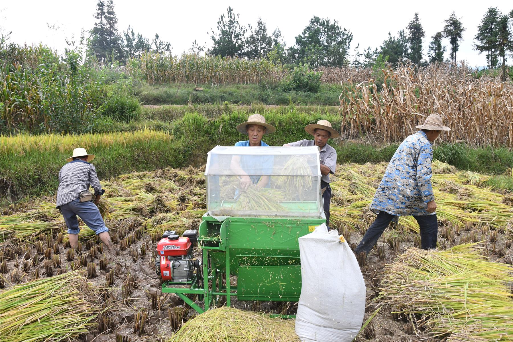 大陽鎮(zhèn)雞鳴村村民王緒元告訴記者,今年他種了0.4公頃稻田,每公頃稻田產(chǎn)量在7500公斤左右。現(xiàn)在他們用打谷機(jī)翻打稻谷比以往人工打谷效率高,人也輕松很多。