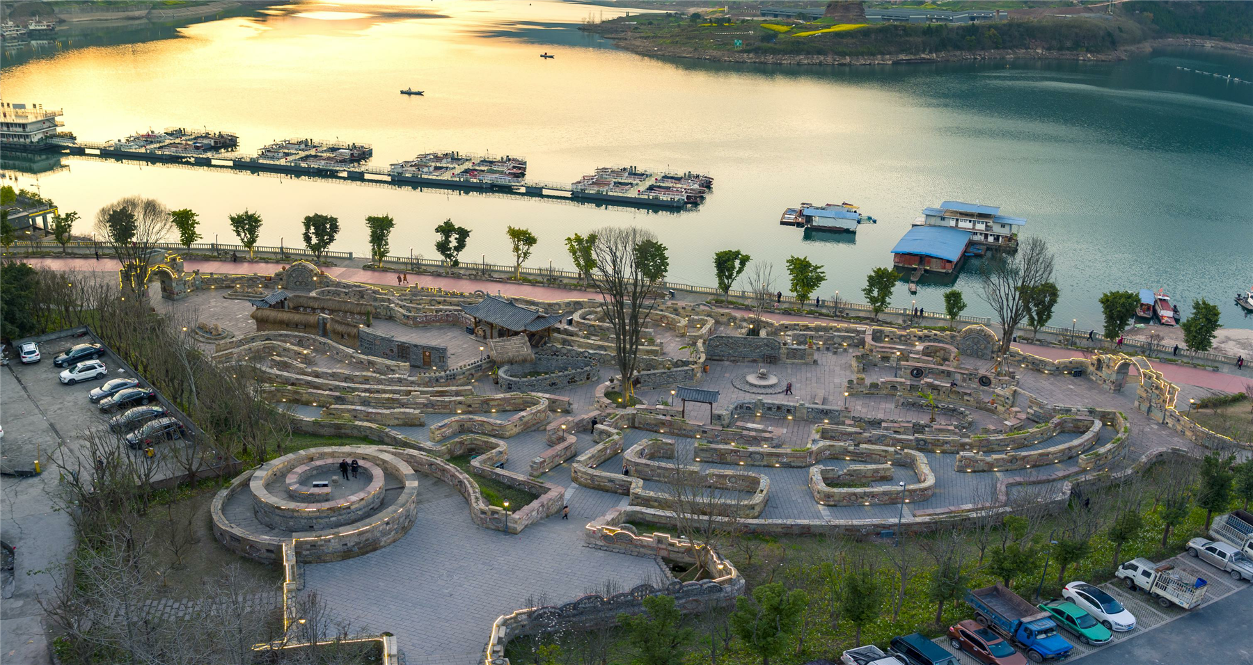 如果時光可以回到三十年前的老縣城,你最想去哪個地方呢?四方井公園內,這處名叫石來運轉的公園,給了云陽人不同的答案。從晨光熹微到暮色降臨,總是不乏來來往往的游客流連于這個面積達1.5萬平方米的巨大迷宮中?!肮珗@構思很好,很有文化底蘊,特別是我們老縣城居住過的人,到這里來看了過后很有種懷舊感,一種鄉(xiāng)愁?!本幼≡谒姆骄浇氖忻裨老壬f,飯后到石來運轉公園走一走,是家人每天的“必修課”。