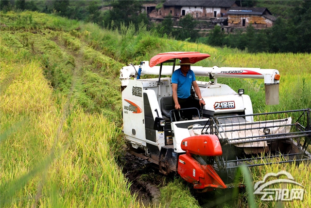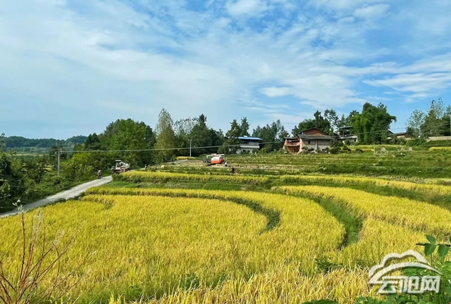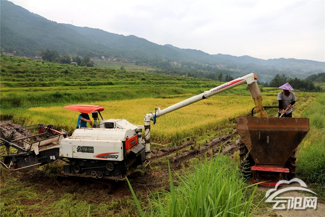 金秋十月稻飄香,稻花香里說豐年。在南溪鎮(zhèn)天河村昌隆農(nóng)業(yè)基地,沉甸甸、金燦燦的稻子壓彎了稻穗,微風(fēng)吹過,金黃的麥浪隨風(fēng)起舞。陳昌民駕駛著水稻收割機(jī)在稻田里來回穿梭,收割、脫粒、卸倉(cāng)、裝車、運(yùn)輸,忙碌的豐收景象讓人沉醉。