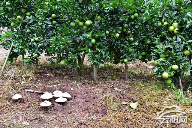 此外,記者還在柑橘地里看到許多蘑菇開(kāi)得正盛,原來(lái),這也是柑橘地提質(zhì)增效的一個(gè)亮點(diǎn)。通過(guò)在樹(shù)底埋上菌渣,柑橘長(zhǎng)得又多又大又甜。