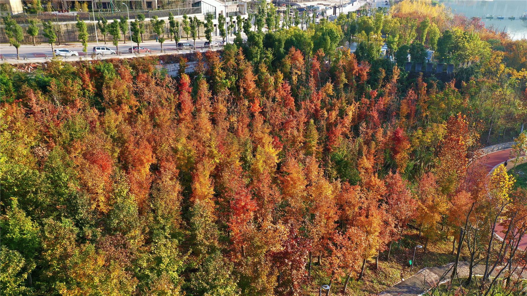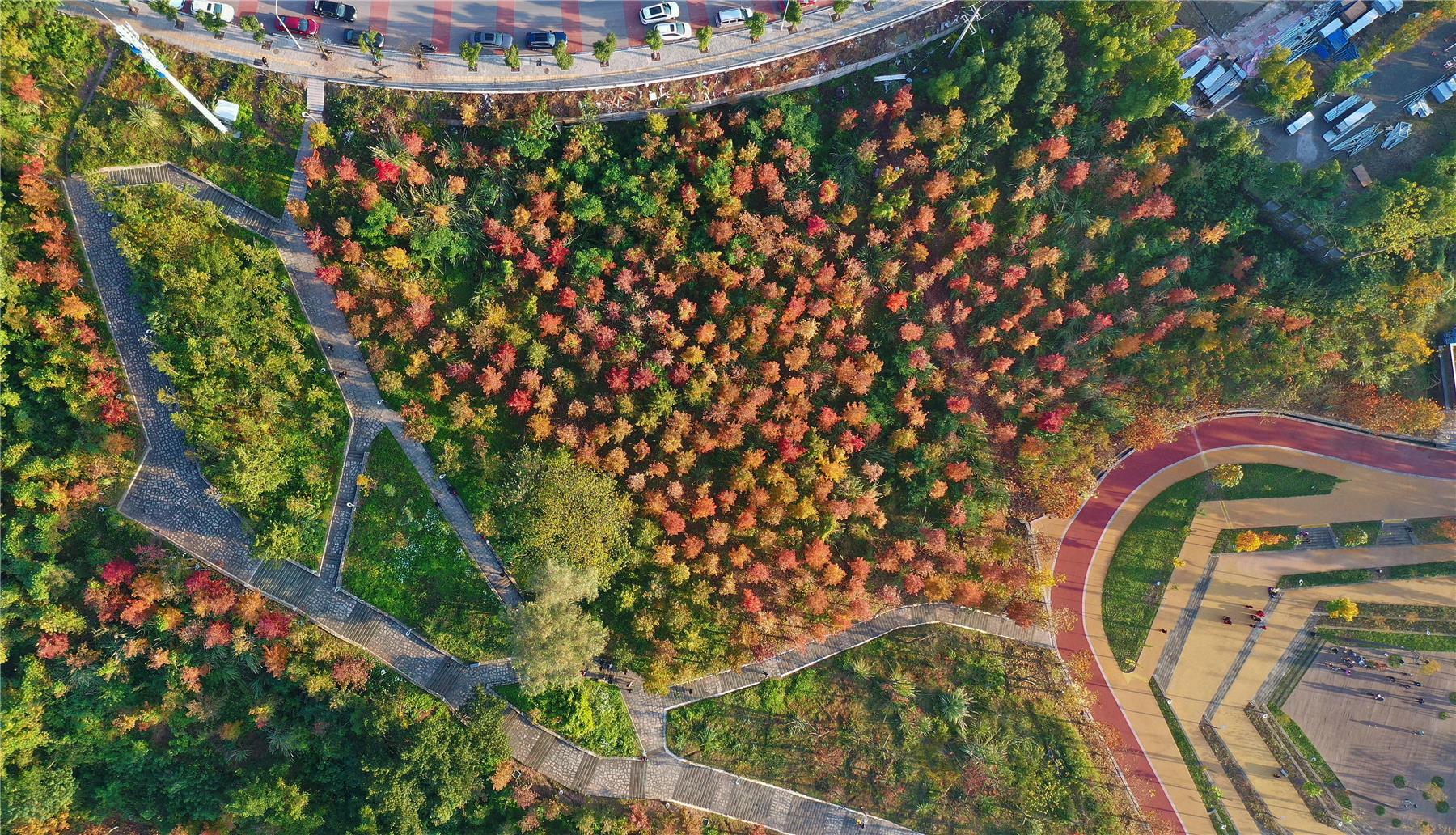這段時(shí)間,隨著天氣放晴,白鷺公園的紅楓樹(shù)也迎來(lái)了最佳觀賞期。成片的紅楓、水杉等變黃或變紅,色彩斑斕,仿佛調(diào)色板被打翻。火紅的楓葉隨著步道、河岸綿延開(kāi)來(lái),在陽(yáng)光的映照下,整個(gè)公園呈現(xiàn)出一片“紅葉爛漫 層林盡染”的迷人景象。(吳大維 攝)