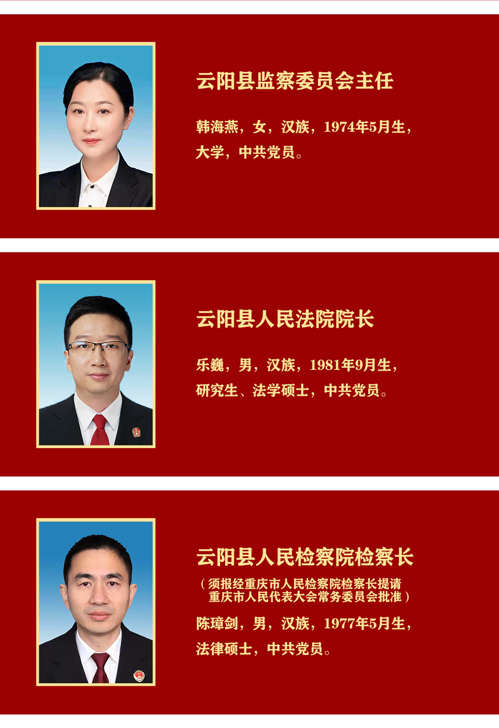 云陽縣監(jiān)委會(huì)主任、法院院長(zhǎng)、檢察院檢察長(zhǎng)簡(jiǎn)介