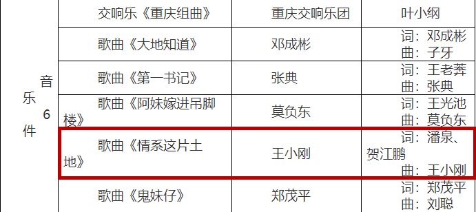 云陽網(wǎng)訊(記者 劉沖)近日,市人力社保局、市文聯(lián)、市作協(xié)、市民族宗教委聯(lián)合發(fā)布了《關(guān)于表彰第九屆重慶文學(xué)和藝術(shù)獎(含少數(shù)民族文學(xué)獎)的決定》,總計60件文藝作品獲得第九屆重慶藝術(shù)獎,15人被評為德藝雙馨文藝工作者,17件文學(xué)作品獲得第九屆重慶文學(xué)獎(含少數(shù)民族文學(xué)獎)。值得一提的是,由我縣選送的本土原創(chuàng)歌曲《情系這片土地》獲評此屆重慶藝術(shù)獎。