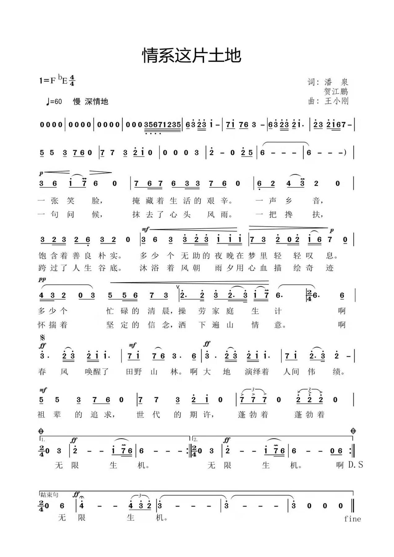《情系這片土地》由潘泉、賀江鵬作詞,王小剛作曲,重慶市著名男高音歌唱家、重慶市音樂家協(xié)會秘書長姜明傾情演唱。歌曲以脫貧攻堅為主題,大氣磅礴,感人至深,是詞曲作者在我縣扶貧一線采風(fēng)時所創(chuàng)作,深刻抒發(fā)了中華民族對于土地深厚的情感,真摯表達了人民群眾期盼脫貧攻堅必勝的堅強信心。