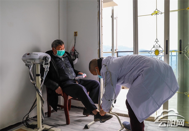 日前,在沙市鎮(zhèn)盛慶養(yǎng)老護(hù)理中心的康復(fù)訓(xùn)練室內(nèi),今年68歲的王世華在沙市鎮(zhèn)中心衛(wèi)生院醫(yī)務(wù)科主任張禮成的指導(dǎo)下,利用康復(fù)器材鍛煉身體。此外,衛(wèi)生院的醫(yī)護(hù)人員還為養(yǎng)老護(hù)理中心的老人們測血壓,查血糖,送醫(yī)送藥。