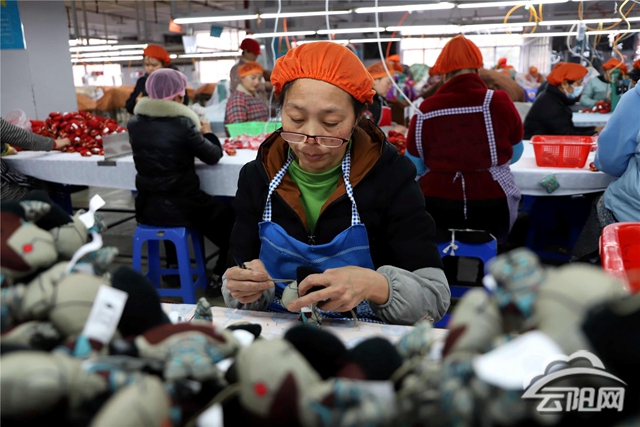 云陽網(wǎng)訊(記者 李歆宇 楊力)3月2日,在雄業(yè)玩具生產(chǎn)車間,多條加工生產(chǎn)線有序運(yùn)轉(zhuǎn),工人們在各自崗位上趕工,經(jīng)過裁剪、縫紉、充棉、包裝等流程后,一個個精致的毛絨玩具呈現(xiàn)眼前,將銷往國外。