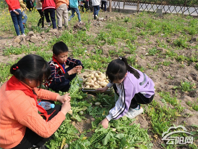下午,黨員老師帶著少先隊員們來到勞動實踐基地,大家或兩人一組,或三五成群,各司其職、干勁十足,合力栽下了一株株樹苗,處處呈現(xiàn)出熱火朝天的忙碌景象。少先隊員們還有意外的收獲,之前種植的蘿卜和萵筍葉成熟了,大家拔了幾大筐蘿卜和萵筍葉帶回家,看著自己種植的蔬菜收獲了,有的少先隊員甚至當場洗干凈蘿卜啃了起來。