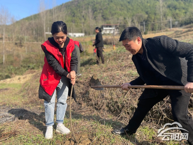 三月的清水,暖陽高照,春風宜人。上午八點,植樹活動現(xiàn)場呈現(xiàn)一片繁忙而和諧的景象。參與植樹的機關同志、志愿者和村民一起揮鋤挖土、扶苗填坑,大家兩人一組或三五成群,各司其職、干勁十足、配合默契,齊心協(xié)力栽下山胡椒樹苗500株,為清水的春天裝點新希望。