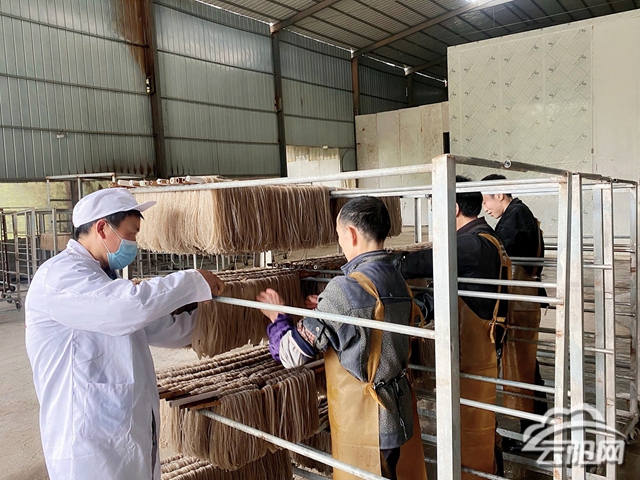 4月5日,筆者走進(jìn)云陽縣渝路食品有限責(zé)任公司粉條生產(chǎn)車間,只聽到機(jī)聲隆隆,工人們分工協(xié)作,正在忙碌著和面、下粉、速凍、晾曬和裝包,呈現(xiàn)出一派欣欣向榮的景象。
