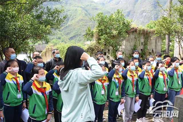 活動中,該校黨支部書記袁昌銀同志代表師生向烈士敬獻鮮花,所有人在紀(jì)念碑前默哀一分鐘,大隊輔導(dǎo)員向大家介紹了楊樂富烈士事跡,接著舉行了少先隊員和黨員在紀(jì)念碑前莊嚴(yán)重溫入黨誓詞,齊唱《沒有共產(chǎn)黨就沒有新中國》。