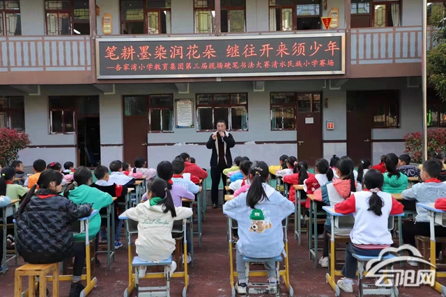 當(dāng)天,杏家灣小學(xué)教育集團(tuán)的杏家灣小學(xué)、清水民族小學(xué)、清水云龍小學(xué)、蔈草小學(xué)、歧陽小學(xué)、水口小學(xué)6所學(xué)校3000多名學(xué)生分別在各個(gè)比賽場地開展比賽。各個(gè)學(xué)校賽場上,同學(xué)們書寫姿勢端正,聚精會(huì)神,書寫規(guī)范美觀。一邊是筆墨飄香潤心靈,一邊是橫豎撇捺涵素養(yǎng),從流動(dòng)的筆尖下,每一個(gè)漢字仿佛都幻化成孩子們喜愛的靈動(dòng)小精靈,在他們紛呈的世界里,漢字或坐、或起、或飛、或躍、或奔、或舞。不一而足,但精彩絕倫。