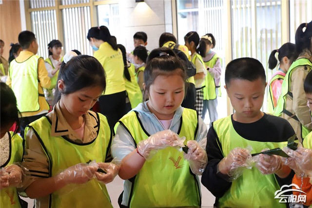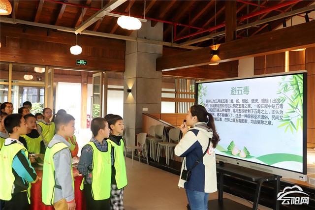 當天,來自全縣各小學的50名青少年在研學老師的帶領下有序進入營地,用艾草凈手、用雄黃酒在額頭畫“王”字,獨特的體驗瞬間激起了孩子們的好奇心。端坐蒲團、安靜聆聽,通過觀看主題短片,孩子們對端午節(jié)有了更深入的認識和了解。