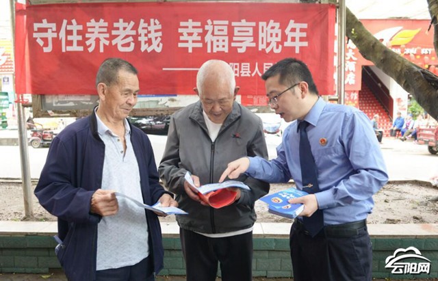 “老輩子們,都過來看看喲,我們是檢察院的,來做反詐宣傳?!痹脐枡z察院干警在轄區(qū)內(nèi)一廣場,開展“守住養(yǎng)老錢,幸福享晚年”養(yǎng)老反詐宣傳專題活動?;顒蝇F(xiàn)場,檢察干警向老年人講解了養(yǎng)老詐騙的常見手法,發(fā)放了200余冊反詐宣傳資料,幫助老年人提高識騙防騙能力。