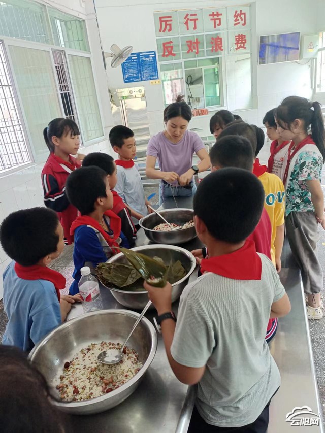 為了更好地體驗實踐活動,在勞技課上,老師向學生講解如何包粽子并做示范,同學們在老師的指導下學習了包粽子,同學們都積極參加到此項活動中,還表示要把包好的粽子帶回家跟家人?起分享勞動的成果,感受節(jié)日氣氛。