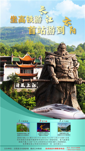 2.高鐵開(kāi)通之日起7日內(nèi),免費(fèi)對(duì)象憑身份證可免費(fèi)乘坐云陽(yáng)高鐵站-張飛廟景區(qū)-龍缸景區(qū)直通車(chē);