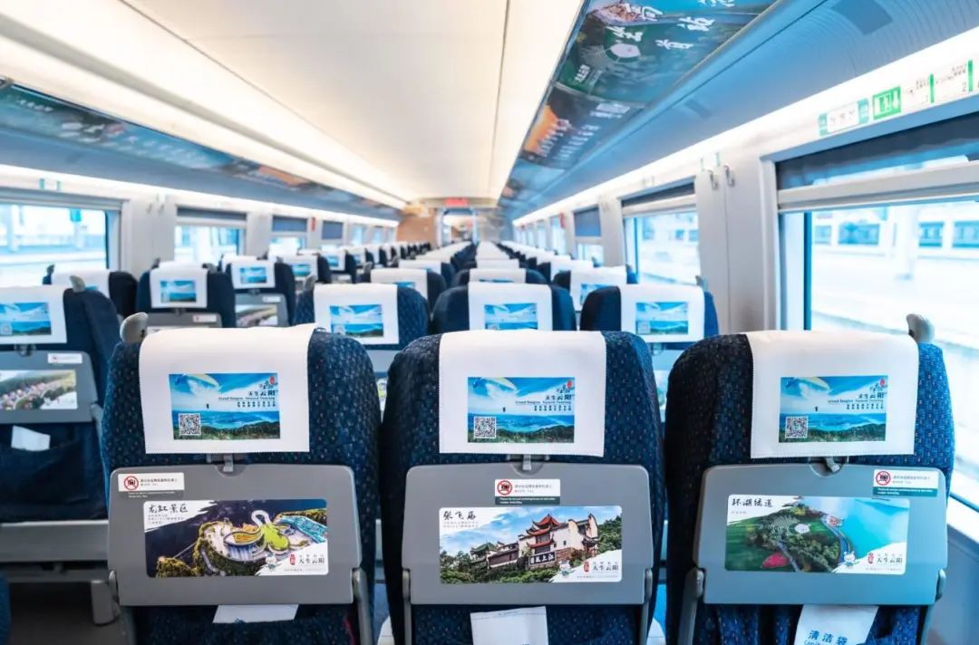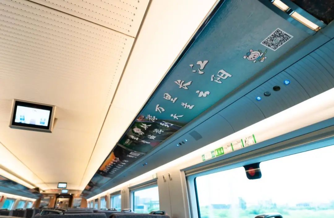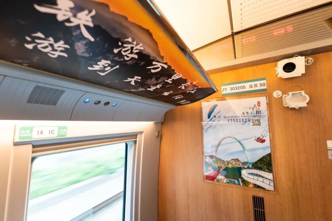 左右兩排行李架天幕也印有云陽各景區(qū)