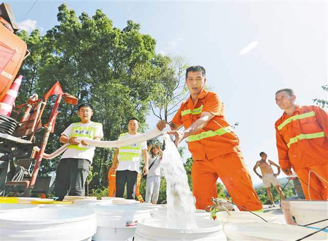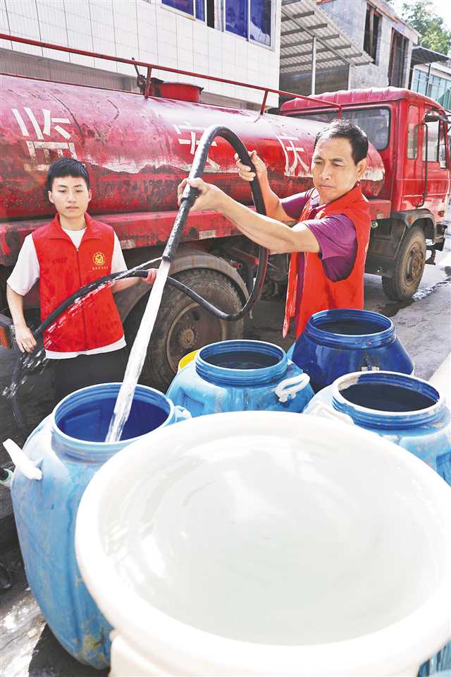 “政府給我們送水來(lái)了!”8月17日一大早,江津區(qū)永興鎮(zhèn)艾家村村民何啟福,看到一桶桶清泉、一車車自來(lái)水被送到家門口,臉上樂(lè)開(kāi)了花,“現(xiàn)在的水比油都金貴呢!”