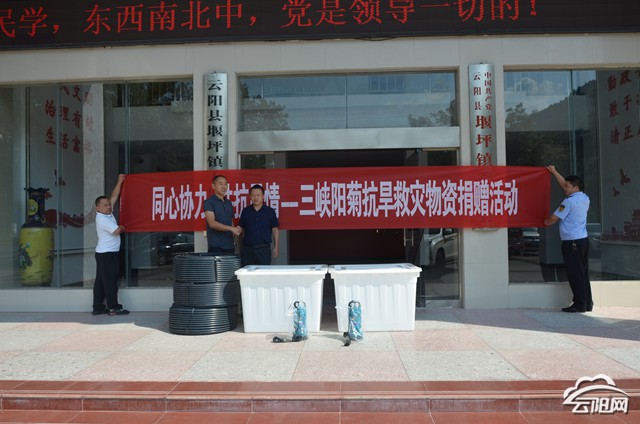 “500升蓄水桶2個(gè),管子3圈,抽水泵2個(gè),東西不多,希望能幫到你們?!薄斑@是200份菊花飲品,是我們的一點(diǎn)心意?!薄斑@是5000元的愛心資金?!薄斑@是10000元愛心資金?!薄拔乙操?zèng)送10000元?!泵鎸?duì)旱情,堰坪鎮(zhèn)愛心企業(yè)家紛紛慷慨解囊。
