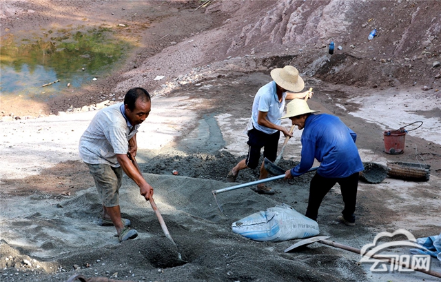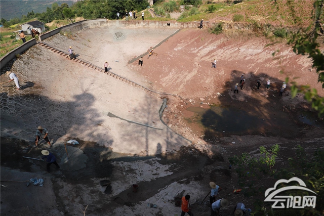 8月24日,在紅獅鎮(zhèn)中坪村1組,村民們拿著鐵鏟、鋤頭、鐵鍬、扁擔(dān)等工具,分工協(xié)作,割除山坪塘周邊的枯枝雜草,清除堵塞溝渠里的淤泥、石塊、樹(shù)枝等雜物,并用水泥修補(bǔ)裂縫,現(xiàn)場(chǎng)一派熱火朝天。