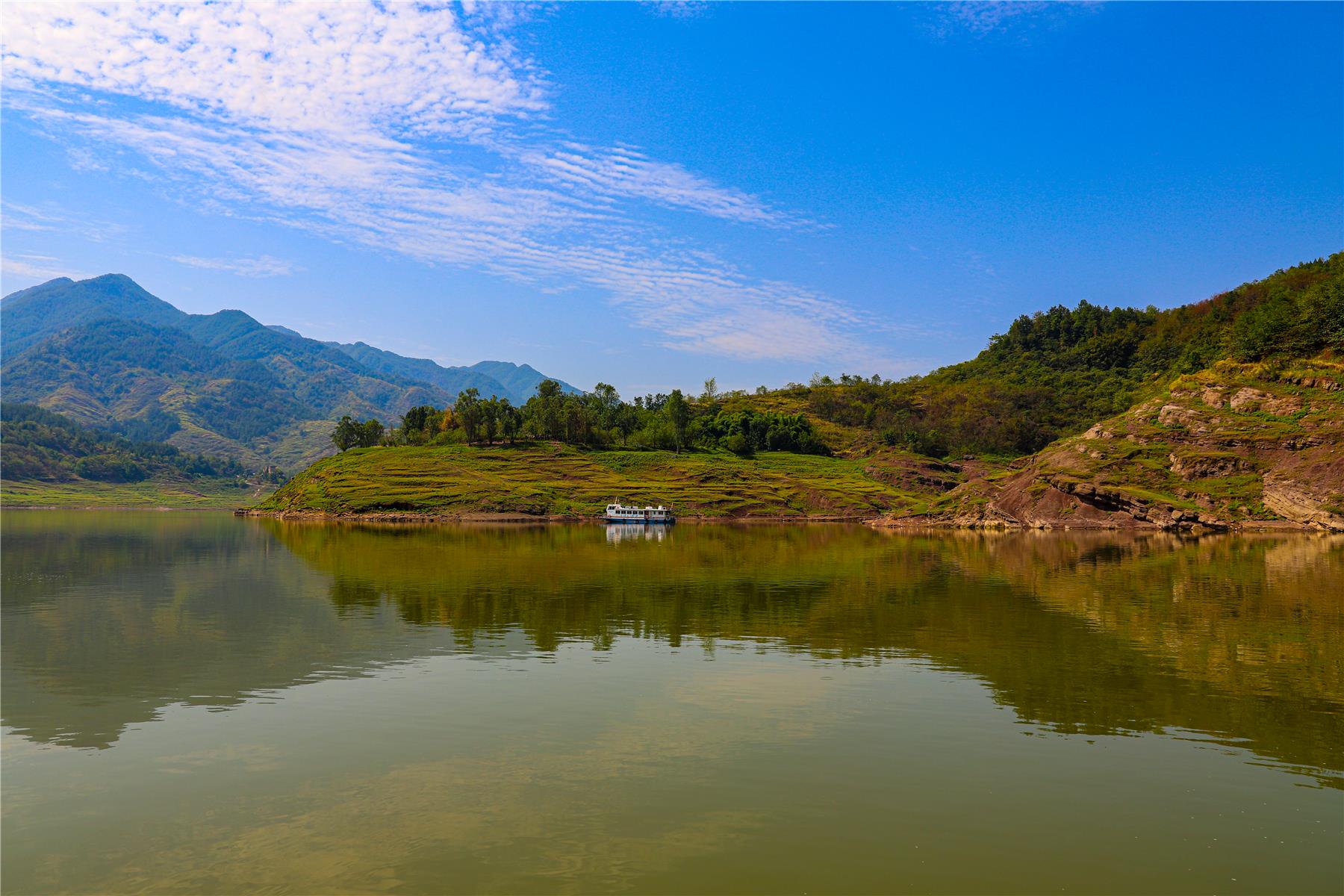 據(jù)了解,高陽平湖位于云陽縣西北部,因三峽水庫蓄水倒灌,經(jīng)彭溪河流域而形成50余平方公里的巨大平湖,庫岸線總長70余公里。周圍群山連綿起伏,海拔高度100米—1100米,群山攬一灣碧水。據(jù)不完全統(tǒng)計,平湖水域有半島15個,湖心島4個,湖濱半島交錯,湖汊港灣縱橫,湖光山色融為一體,蔚為壯觀。(譚啟云 汪婷婷 攝)