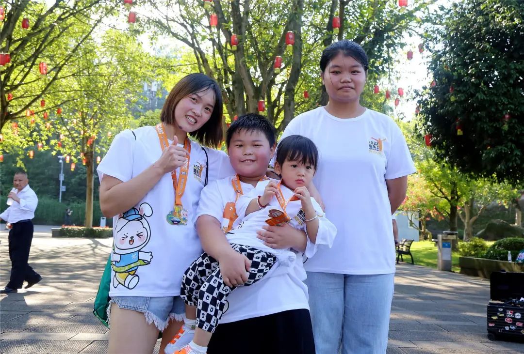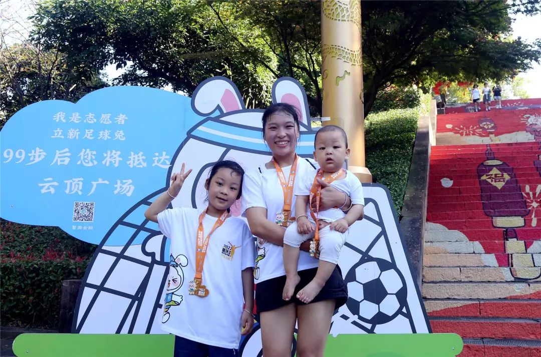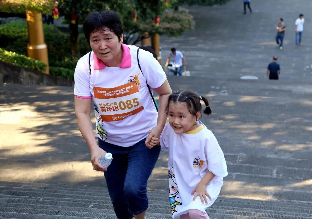 “看到云陽環(huán)湖綠道的報(bào)道,趁著國(guó)慶假期來游玩,碰巧遇到這次比賽,就報(bào)名參加了,登上‘世界最長(zhǎng)的城市人字梯’,很有成就感!”來自開州的唐益群懷抱小兒子,手牽大女兒,憑著一股子毅力與堅(jiān)持登上頂點(diǎn)。