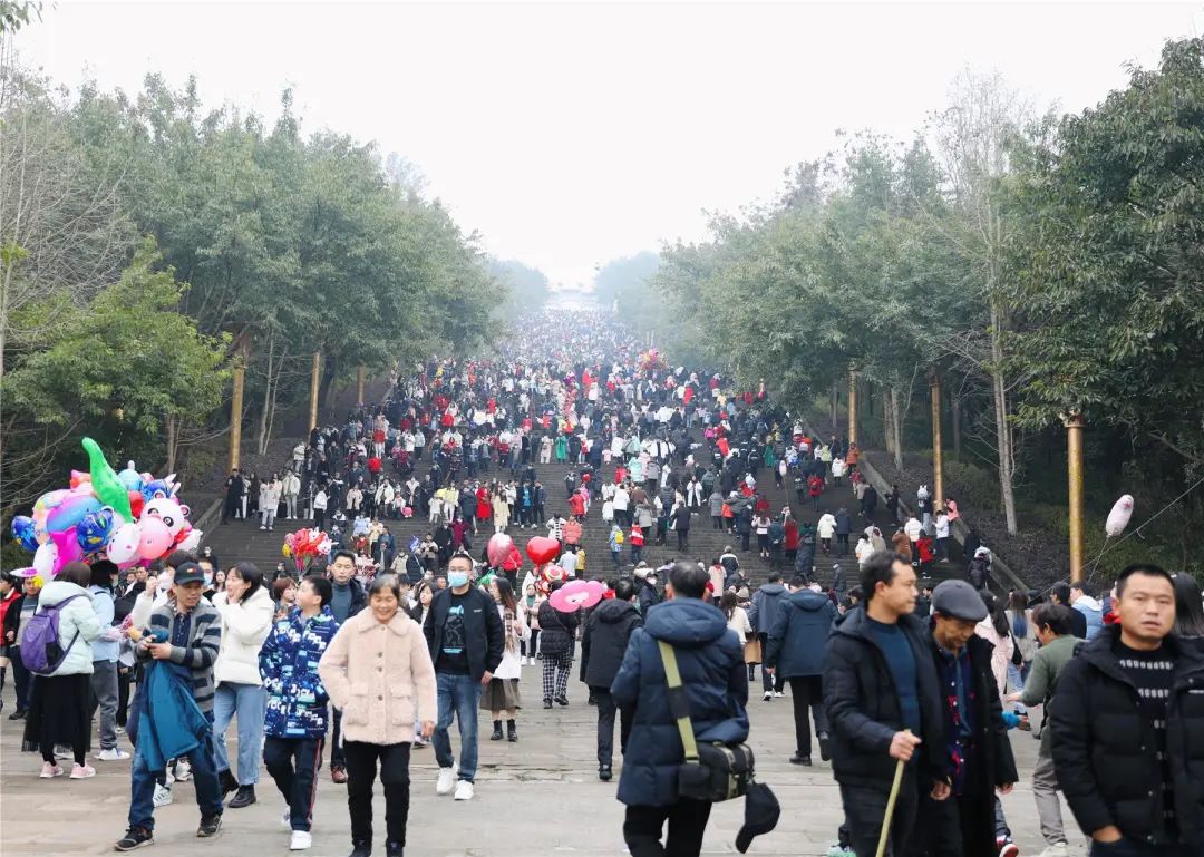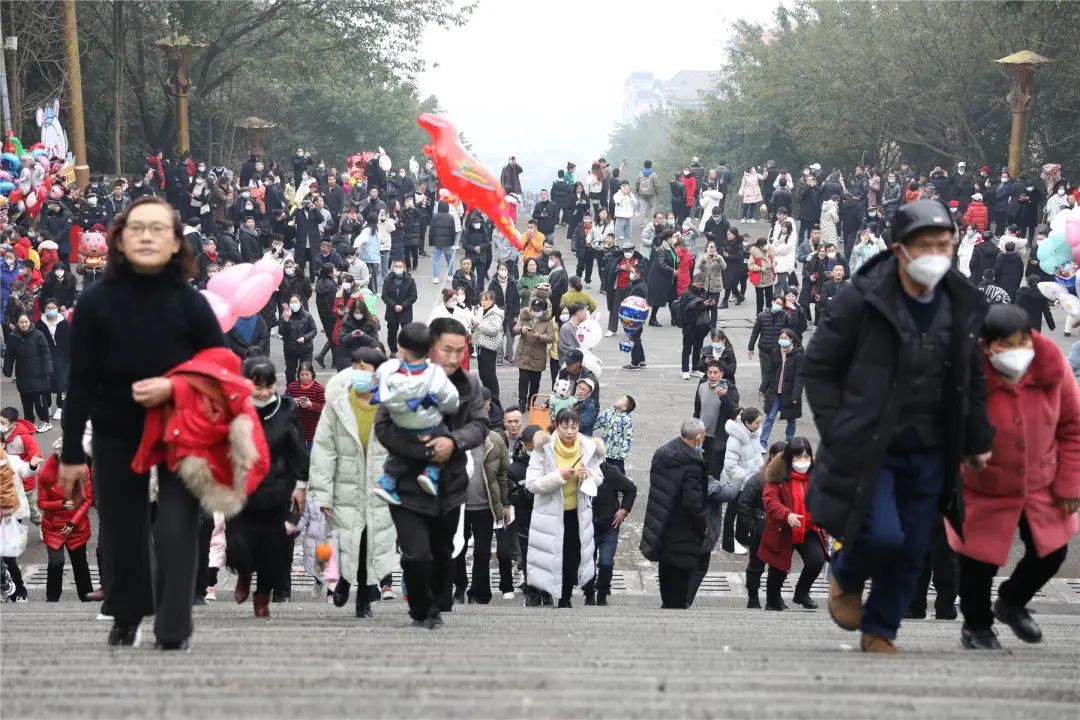 “作云陽女婿,很開心大年初一來參加登高活動,登頂后能看到兩江交匯,很震撼?!眮碜运拇◤V元的母金鑫說。