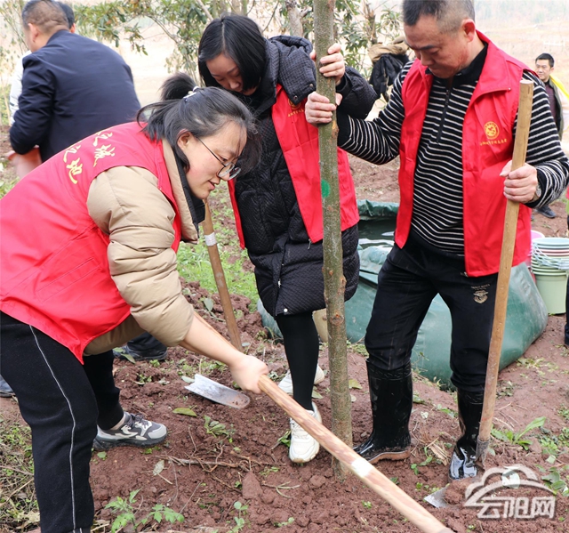 植樹現(xiàn)場,干部職工、黨員志愿者紛紛擼起袖子、拿起鐵鍬、鋤頭等工具投入到繁忙而有序的植樹活動(dòng)中。他們有的手扶樹苗,有的揮鋤培土,有的提水澆苗,有的搬運(yùn)樹苗……三五人一組,相互配合,近百名干部職工分工明確,從揮鎬挖坑、搬運(yùn)樹苗、揮鍬培土、提水澆灌等每個(gè)環(huán)節(jié)都一絲不茍,確保樹木規(guī)范種植。為了保證新樹成活率,縣城市管理局還邀請(qǐng)園林專業(yè)技術(shù)人員現(xiàn)場進(jìn)行植樹技術(shù)指導(dǎo)。